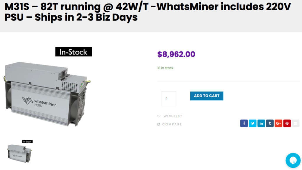 При этом других моделей, кроме S19j, на сайте Bitmain даже нет в продаже. Если брать других производителей, то ситуация схожая. Например, на сайте асиков WhatsMiners от компании MicroBT сейчас в наличии есть всего одна модель — M31S, а ее стоимость в полтора-два раза выше S19j.