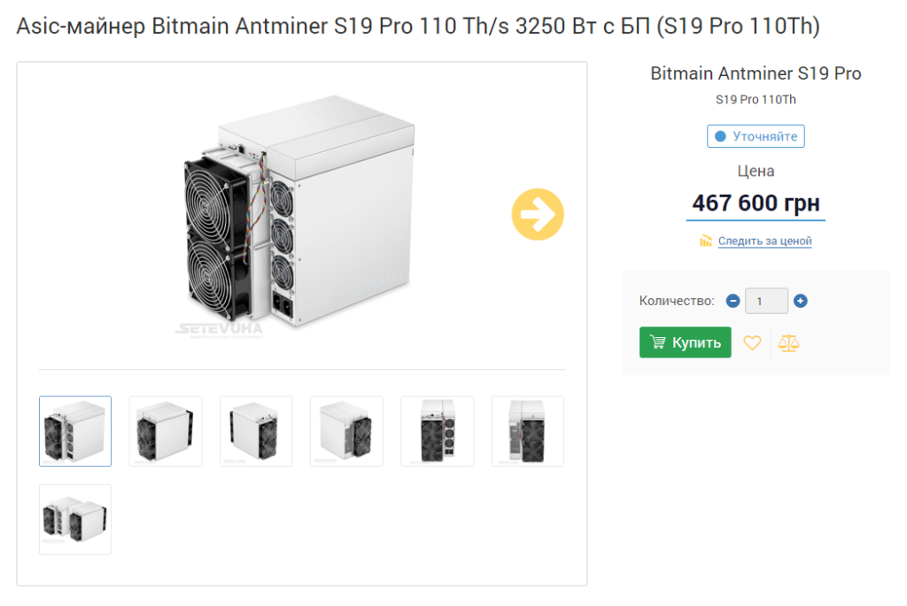 Цена, конечно, колоссальная. На сайте производителя стоимость асика порядка $5 000 за 90 TH/s, а у перекупщиков — уже более $16 000 за модель на 110 TH/s.
