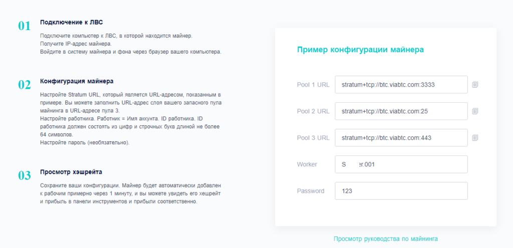 После выбора пула нужно в нем зарегистрироваться. На примере пула Via BTC рассмотрим, как проходит этот процесс, поскольку на всех площадках принцип одинаковый.