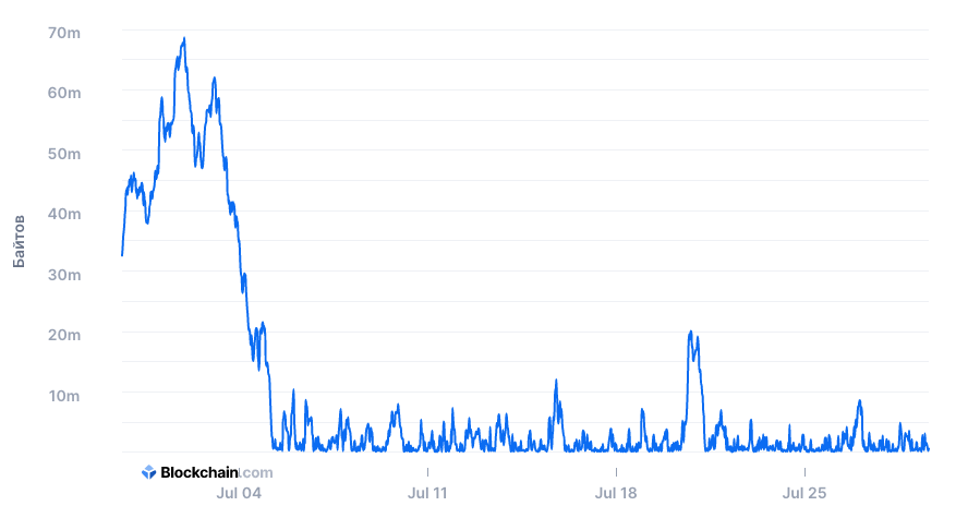 Размер мемпула сети Bitcoin за последний месяц. Источник