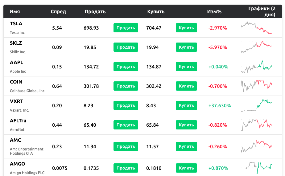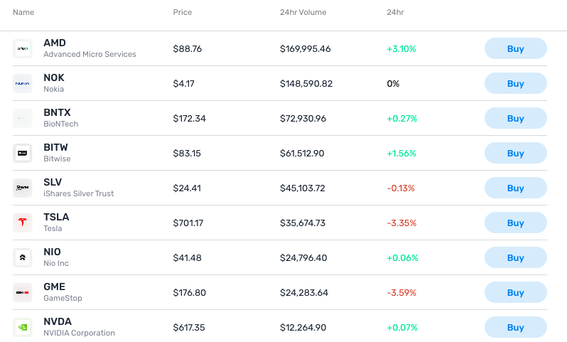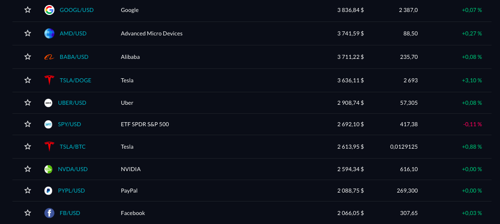 Токенизированные акции, которые можно купить на Currency.com. Источник