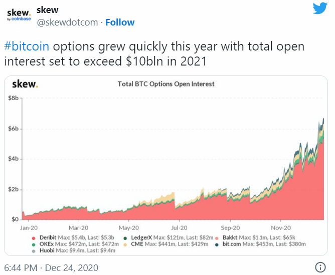 «Открытый интерес по опционам на биткоин превысит $10 млрд к концу 2021 года». Источник
