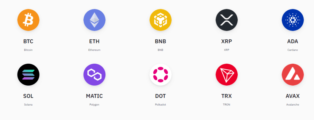 Список криптовалют, которые входят в индекс Binance CMC Top 10 Equal-Weighted Index. Источник