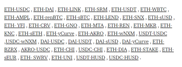 И также анонсировали дополнительное распределение 1INCH среди поставщиков ликвидности в таких пулах: