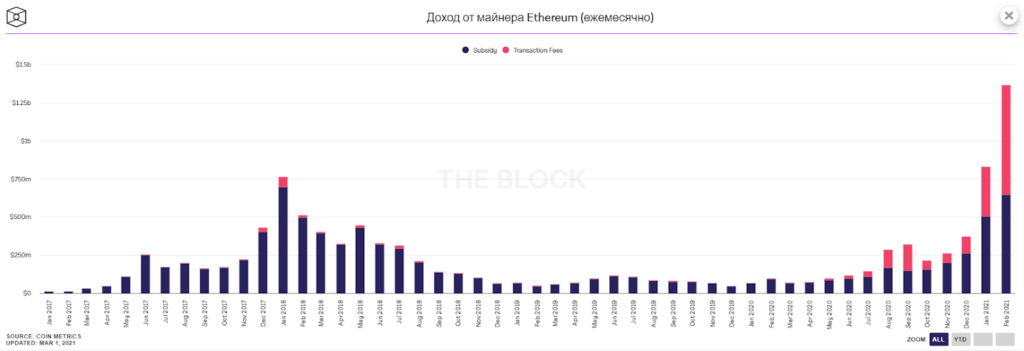 Доход ETH-майнеров в феврале. Источник