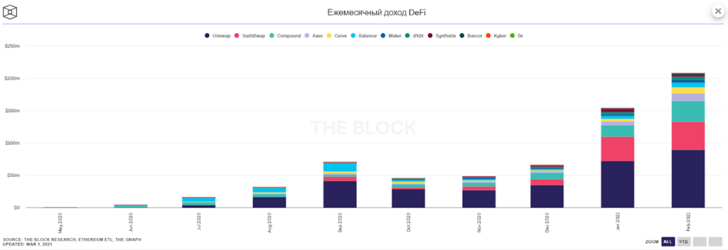 Доход протоколов DeFi в феврале. Источник