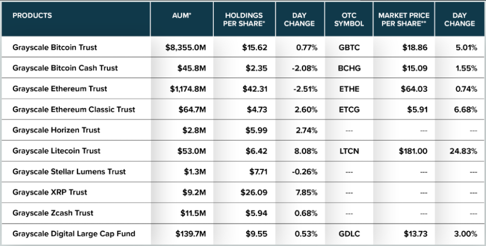 У Grayscale есть фонды, покупающие и другие криптовалюты. Общая стоимость их активов сейчас составляет примерно $400 млн.