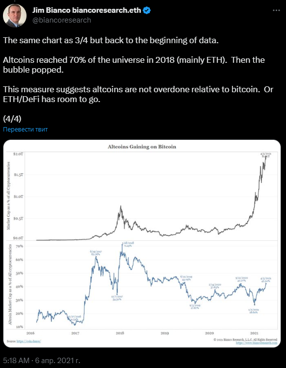 Будут ли альткоины и дальше расти? Бьянко считает, что будут.