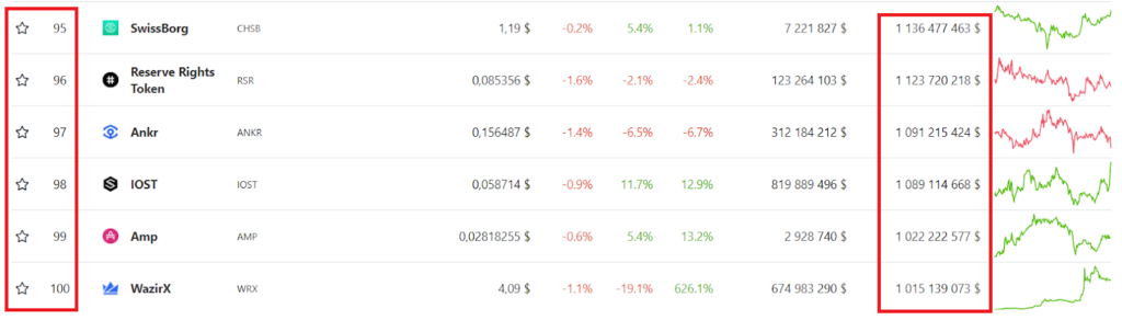 Оценка криптовалют, которые занимают места с 95-го по 100-е по капитализации. Источник