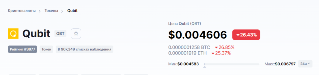 Токен QBT упал на 26% за последние 24 часа: