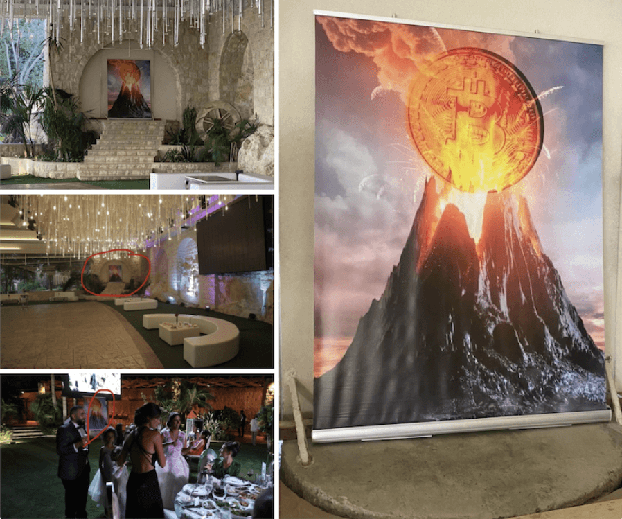 • В свадебном зале он разместил стенд с изображением вулкана в честь Сальвадора, а также раздал гостям по 4 000 сатоши через Lightning Network.