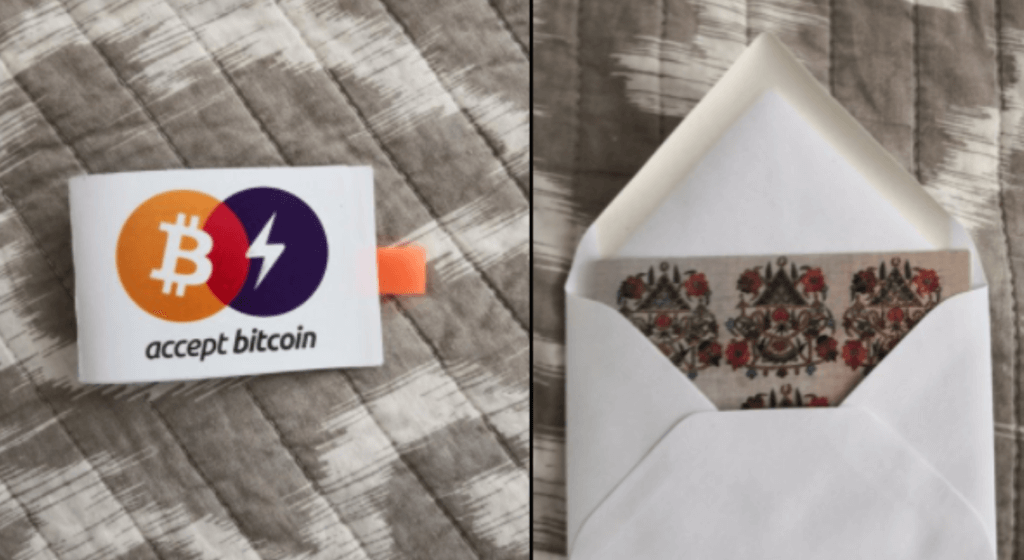 Нассар установил в свадебном зале стенд с изображением вулкана, а сатоши раздал через сеть Lightning Network. Рядом с каждым комплектом столовых приборов гости могли обнаружить инструкцию по настройке кошелька для Bitcoin Lightning Network. После загрузки гости получили по 4 000 сатоши — $0.8 по текущим ценам или $1.6 по ценам на момент свадьбы.