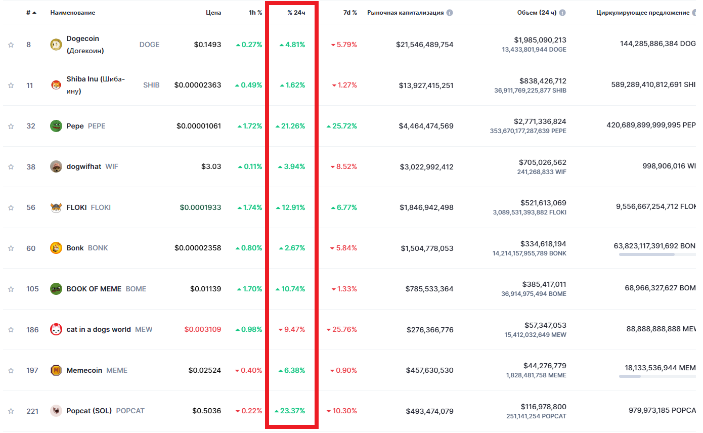 Динамика ценообразования мемкоинов. Источник
