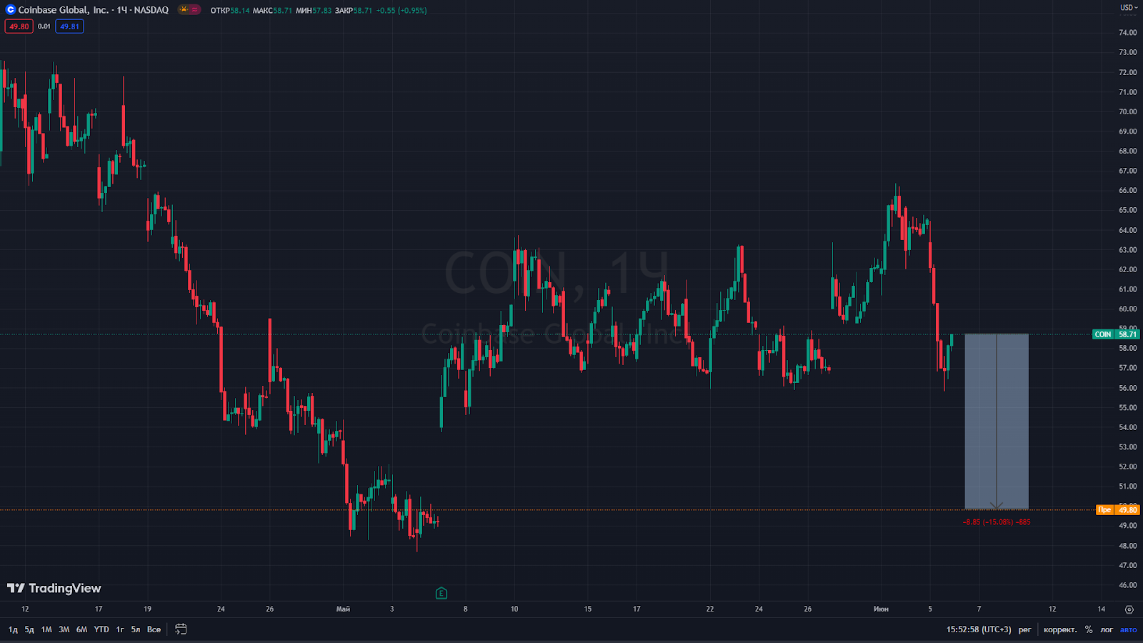 Акции Coinbase. Источник.