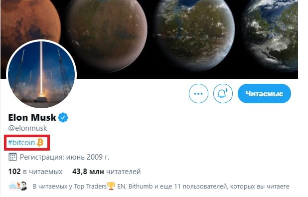 Ранее в феврале Маск изменил блок «О себе» в Twitter, добавив туда хештег #Bitcoin.