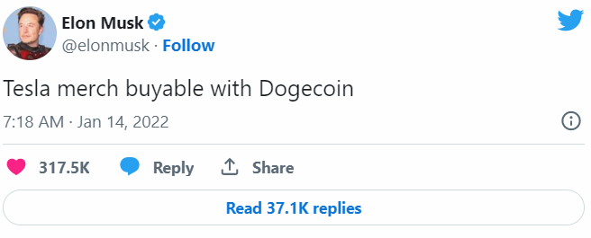 «Товары Tesla можно купить за Dogecoin». Источник