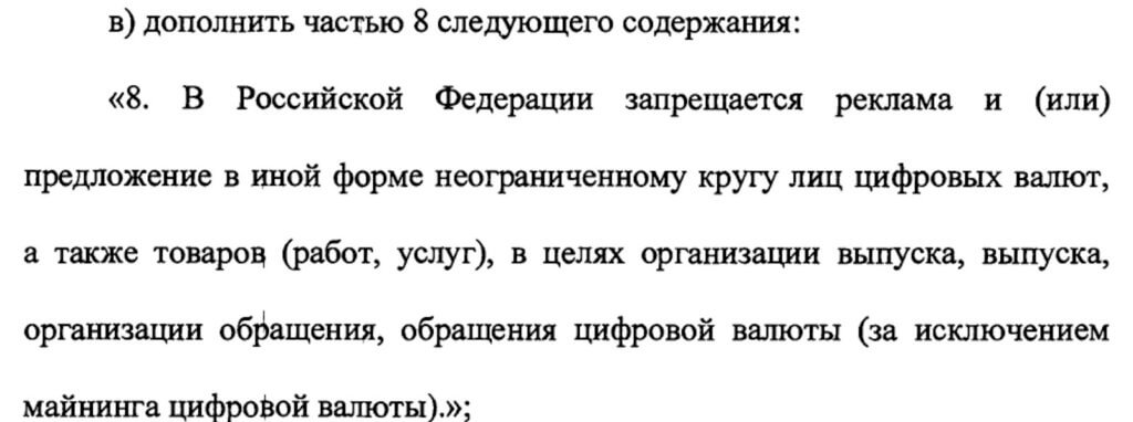 • Отдельно в документе запрещается реклама и/или организация обращения криптовалют.