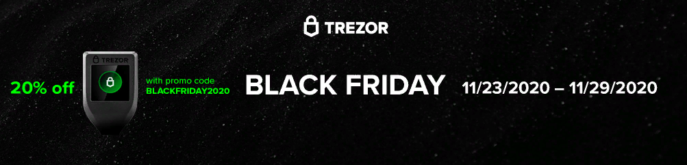 Trezor, еще один популярный производитель аппаратных кошельков, продает свои устройства со скидкой 20% до 29 ноября включительно по промокоду BlackFriday20.