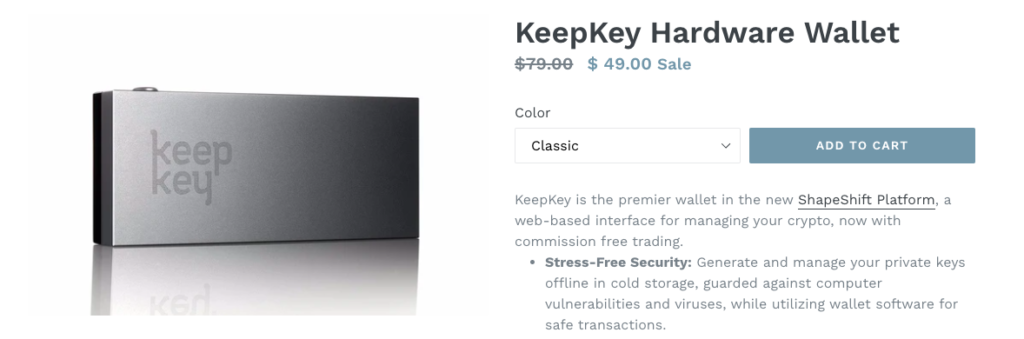 Компания ShapeShift, выпускающая кошелек KeepKey, собирается в прямом онлайн-эфире распродать свои устройства по $5. Чтобы попытать счастье и попробовать купить кошелек, необходимо зарегистрироваться на специальной странице и дождаться запуска трансляции. Если не успеете, можно купить кошелек KeepKey со скидкой 38% — всего за $49 вместо $79.