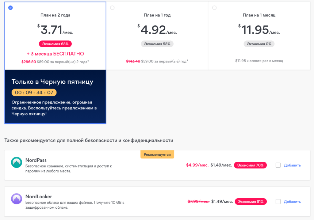 NordVPN, один из самых популярных VPN-сервисов, предлагает скидку 68% на свой двухлетний тарифный план, а также 3 дополнительных месяца бесплатно и скидку в 58% на годовой тариф.