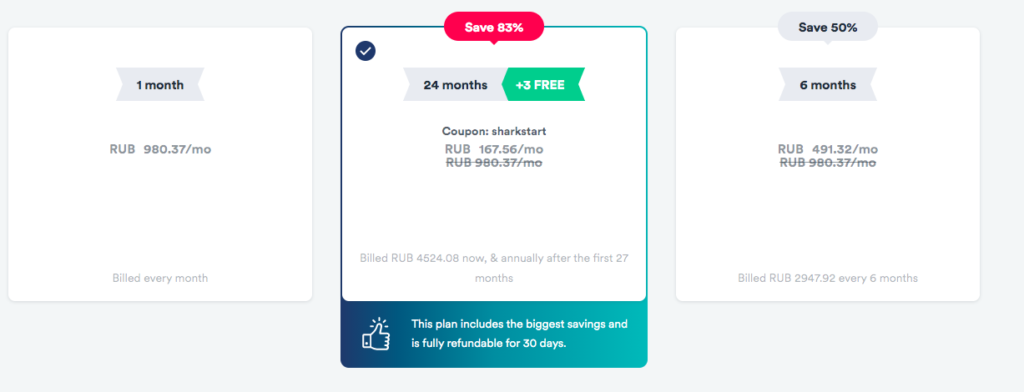 SurfsharkVPN и вовсе готов продать двухлетний тариф и дать 3 месяца пользования в подарок со скидкой аж в 83%.