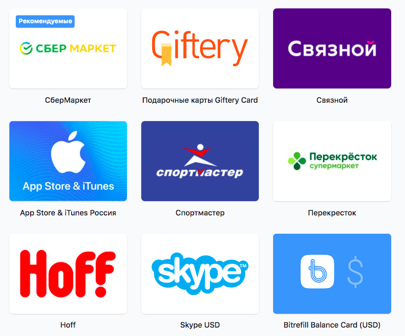 В частности, подарочные карты из Bitrefill могут использовать и покупатели из России. Так, на сайте есть несколько десятков магазинов и сервисов нашей страны, в том числе «Перекресток», «Спортмастер», «СберМаркет», «Hoff», «Детский мир», «Декатлон» и «Amediateka».