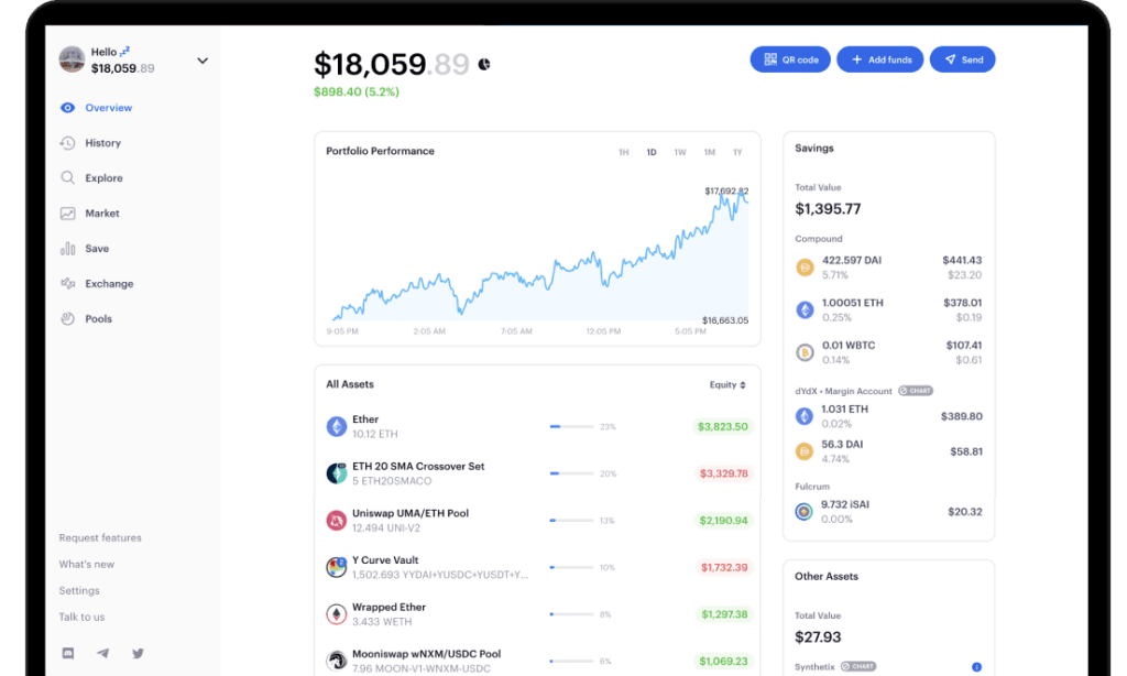 Эта платформа значительно упрощает торговлю DeFi-токенами: приложение получает ликвидность от крупных децентрализованных бирж, что позволяет пользователям Zerion обменивать токены и отправлять их на другие кошельки всего одной транзакцией.